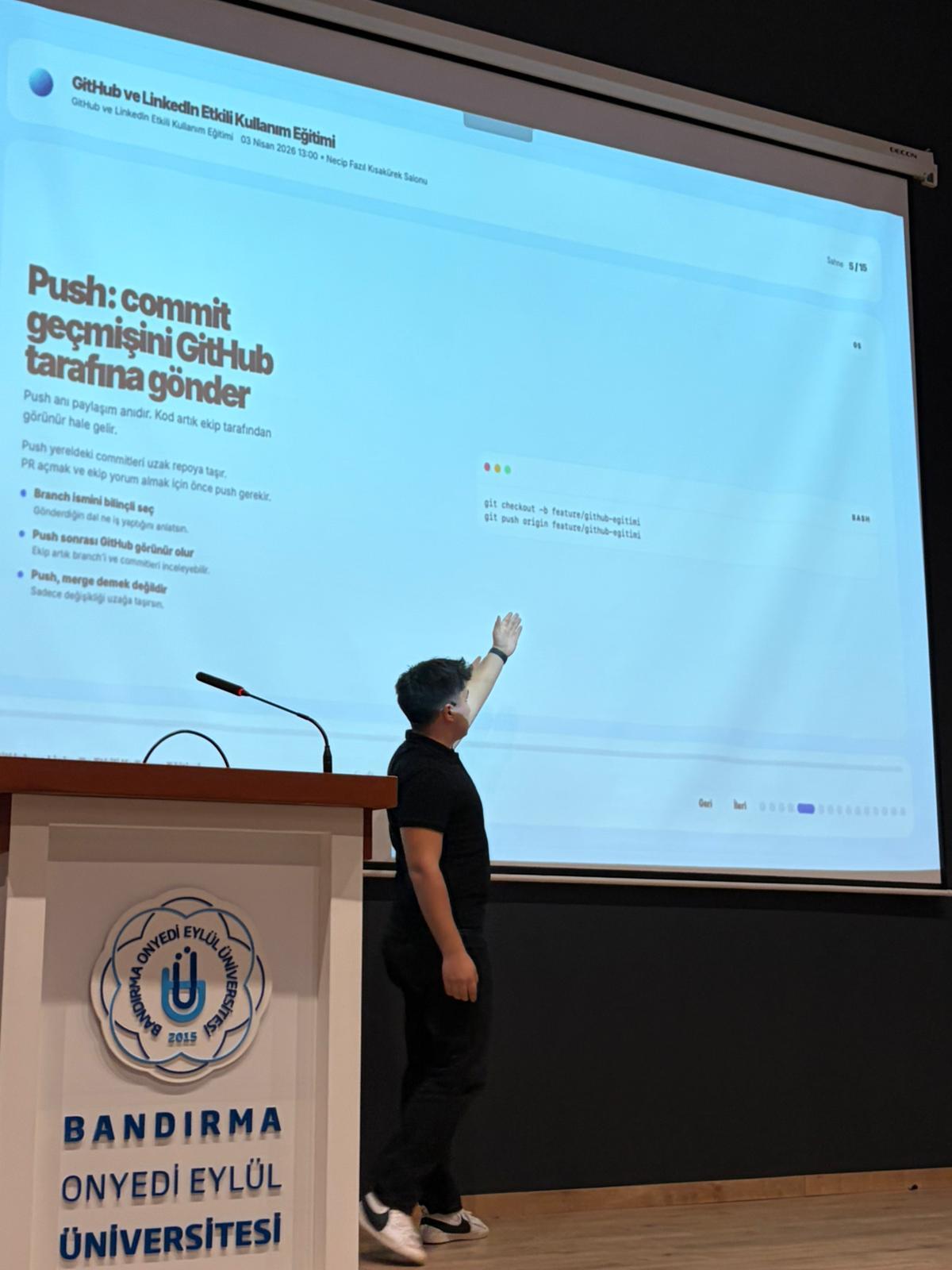 A significant event contributing to the career development of students was held at Bandırma Onyedi Eylül University. The "Effective Use of LinkedIn and GitHub Training," featuring Mustafa Tuna Karataş as a speaker, took place on April 3, 2026, at 1:00 PM in the Necip Fazıl Kısakürek Hall.