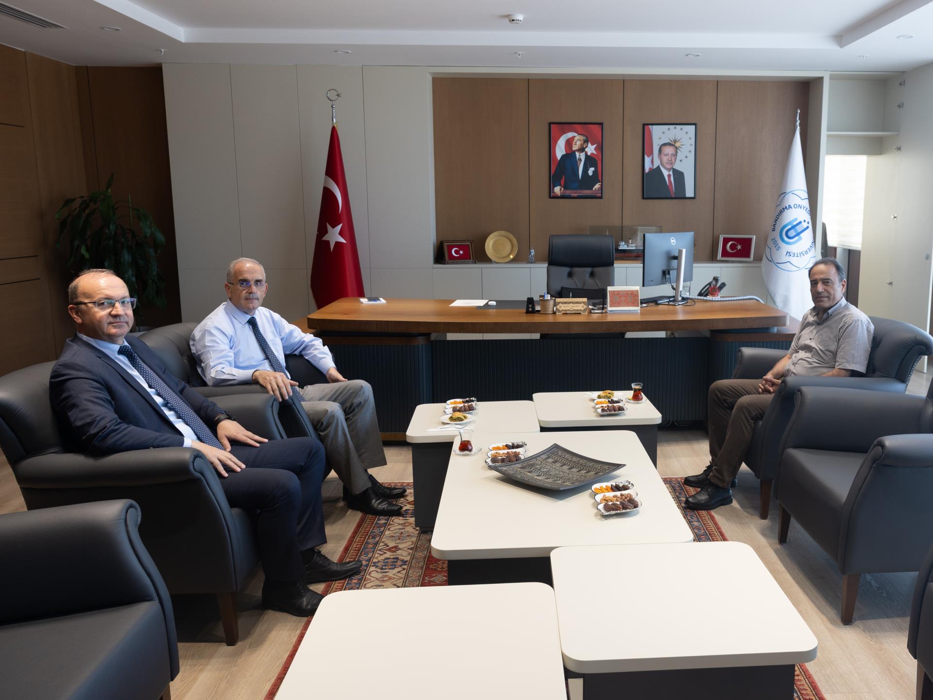 YÖK Denetleme Kurulu Üyesi Prof. Dr. İbrahim Çapak, Rektörümüz Prof. Dr. İsmail Boz’a nezaket ziyaretinde bulundu. Rektörlük makamında gerçekleşen ziyarette, Rektör Yardımcımız Prof. Dr. Mehmet Emin Erçakar da hazır bulundu.