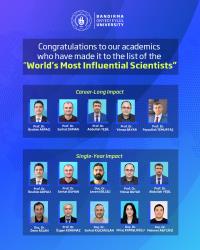 In the 2024 “World’s Most Influential Scientists” list prepared by Stanford University, eleven academicians from our University were included. The number reached this year indicates a higher success compared to previous years, revealing that our University has been increasingly enhancing its scientific productivity and international visibility.