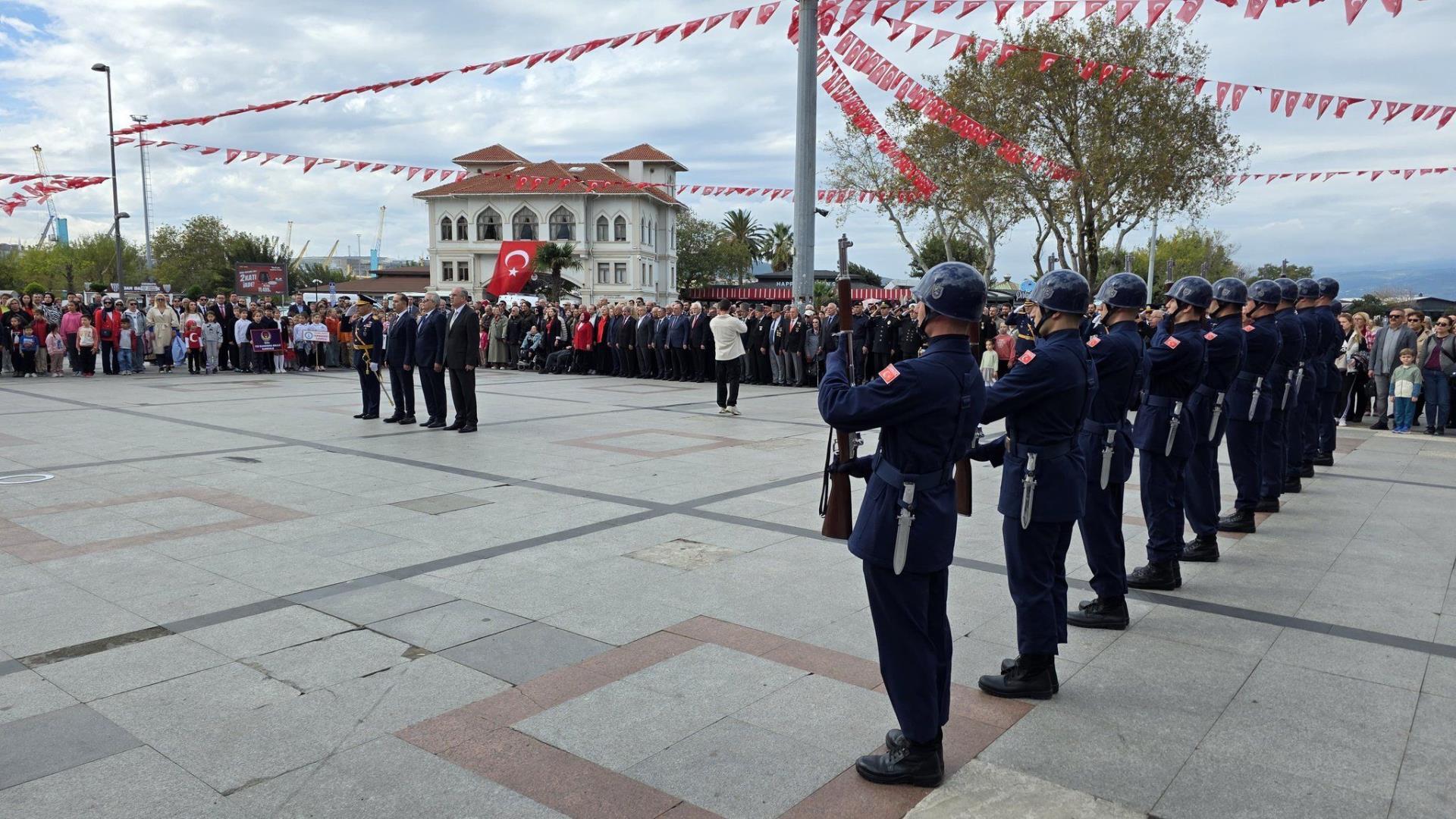 Tören, Bandırma Kaymakamlığı, Garnizon Komutanlığı ve Belediye Başkanlığı tarafından Atatürk Anıtı’na çelenk sunulmasıyla başladı. Ardından saygı duruşunda bulunuldu ve İstiklal Marşı hep birlikte okundu.