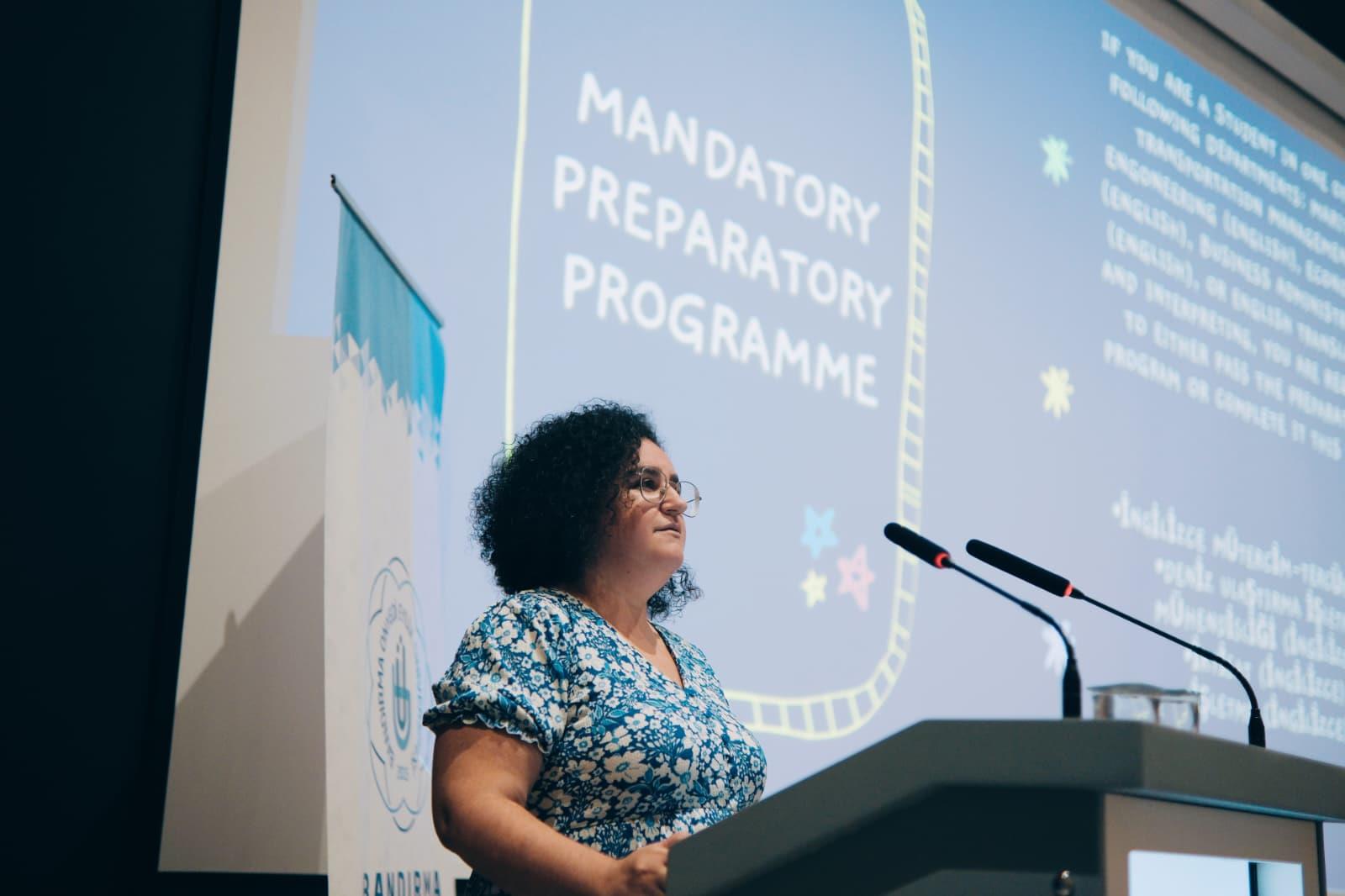 Yabancı Diller Yüksekokulu Müdürü Öğr. Gör. Türkan Yılmaz'ın açılış konuşması ile başlayan programımız, Bölüm başkanı Öğr.Gör. Cansu DİNÇ AYAZ'ın zorunlu hazırlık sınıfları ile ilgili detayları içeren sunumu ile devam etmiştir. Ardından iç paydaşlarımız olan İşletme Bölümü Bölüm Başkanı Prof. Dr. Aybeniz Akdeniz Ar ve Mütercim Tercümanlık Bölümü Bölüm Başkanı Doç Dr. Caner Çetiner hocalarımızın bölümlerine gelen öğrencilere bölümlerini tanıtmaları ile devam etmiştir. Bilgi İşlem Daire Başkanlığından görevlendirlen personelimiz de öğrencilerimiz ile ÜBYS sistemi ve teknik konular ile ilgili bilgiler paylaşmıştır. Yabancı Diller Yüksekokulunda görevli öğretim elemanlarımızın tanıtılması ile devam eden programımız Öğr.Gör. Cansu DİNÇ AYAZ'ın öğrencilerin sorularını yanıtladığı soru-cevap ekinliği ile son bulmuştur.