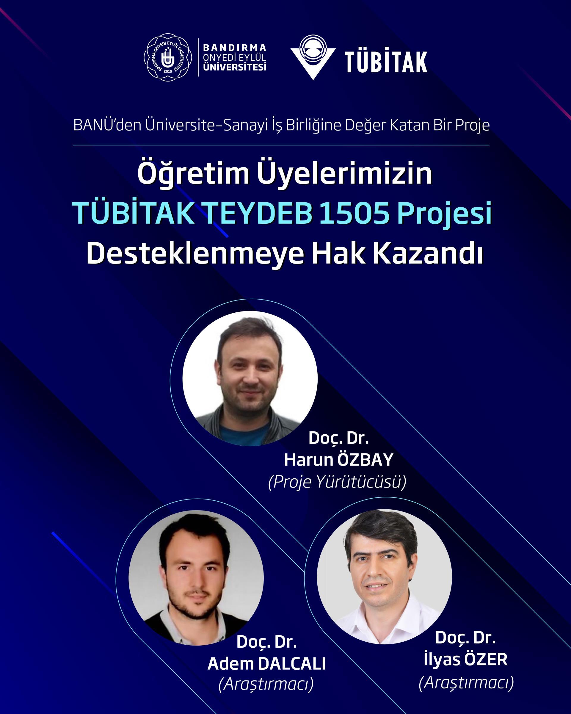 Projesi TÜBİTAK tarafından desteklenmeye hak kazanan öğretim üyelerimizi ve proje ekibini tebrik eder, başarılarının devamını dileriz.