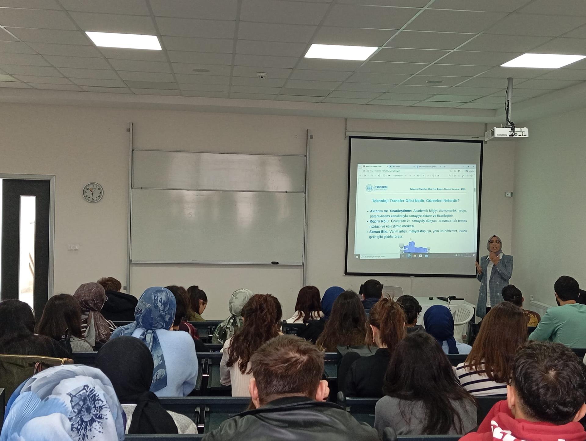 YMM1233 Teknoloji Transferi dersi kapsamında, TTO Müdürü Dr. Öğr. Üyesi Hatice Batmantaş tarafından öğrencilerimize yönelik bir sunum gerçekleştirilmiştir.
